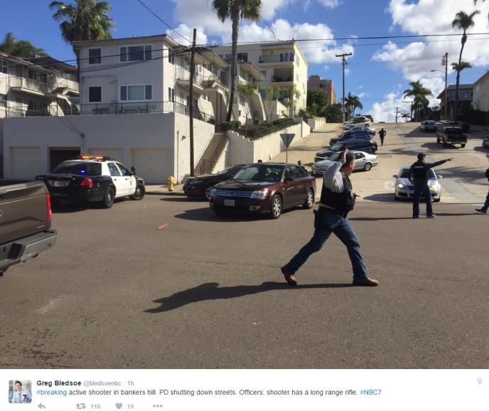 Na međunarodnom aerodromu u San Dijegu je obustavljeno sletanje aviona zbog toga što je u obližnjem stambenom kompleksu u toku pucnjava. Portparol američke Federalne uprave za avijaciju Ijan Gregor navodi da su na aerodromu u San Dijegu sletanja obustavljena, ali su poletanja dopuštena.