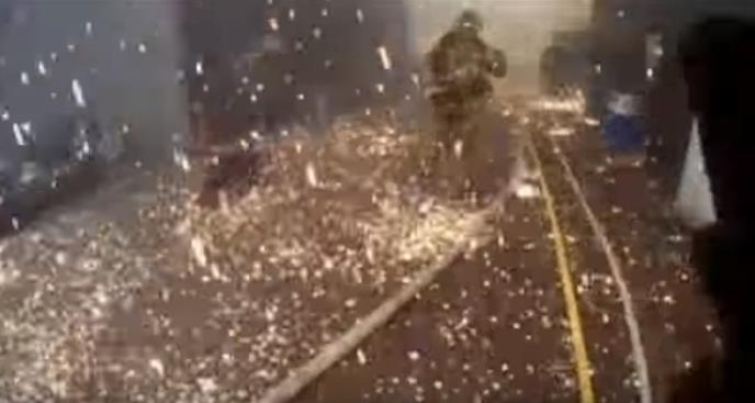Titanijumska eksplozija oslobađa šrapnele dovoljno vrele da odmah mogu da spale nečiju lobanju. Srećom, ovi vatrogasci su imali kacige kada se desio ovaj incident