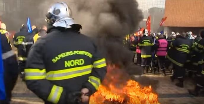 Više od 500 vatrogasaca koji su u štrajku zapali su gume na ulicama Lila, pre nego što su “okupirali“ železničku stanicu u tom gradu.