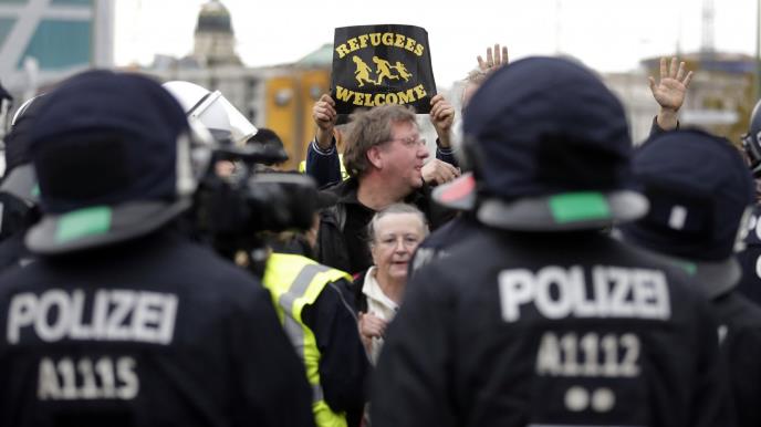 Najmanje deset pristalica prihvatanja izbeglica je uhapšeno, a policija je saopštila kako je u sukobu lakše ranjen jedan njen pripadnik.