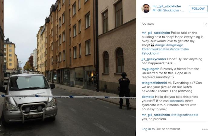 Bušilicu je kroz prozor stana ispustio čovek u pokušaju da postavi zavjese. Policija je stigla u ulicu Brankirgatan čim se začuo glasan udar. Svedoci su prijavili da su u stanu primetili čoveka naoružanog pištoljem.
