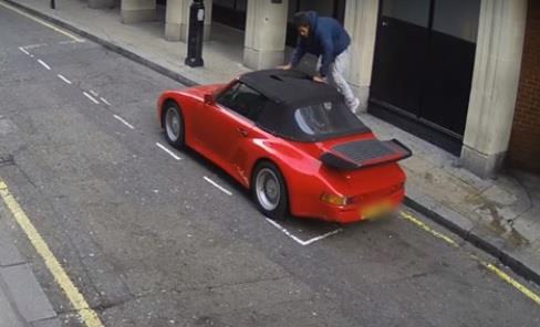Lopov, za kojeg se pretpostavlja da ima oko 20 godina, velikim je nožem u središtu Londona prerezao pomični krov kabrioleta 911, koji vredi oko 50.000 funti pa se popeo unutra. Uprkos tome što je alarm na kolima glasno svirao a svetla blinkala, brojni prolaznici su prošli pored kola a ni jedan nije pokušao da spreči lopova.