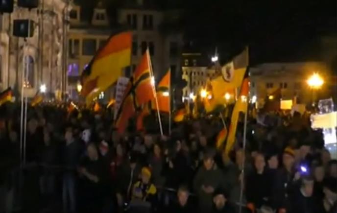 Nemačka kancelarka Angela Merkel nailazi na kritike u zemlji, posebno sa desnice zbog njene otvorene politike prema migrantima. Ove godine se očekuje da će u Nemačku stići oko milion migranata. Prema lokalnom univerzitetu specijalizovanom za brojanje velikih skupova, na kupu Pegide, što je skraćenica za Patriotski Evropljani protiv islamizacije zapada, okupilo se između 9.000 i 12.000 ljudi. Policija je odbila da iznese procenu broja okupljenih.