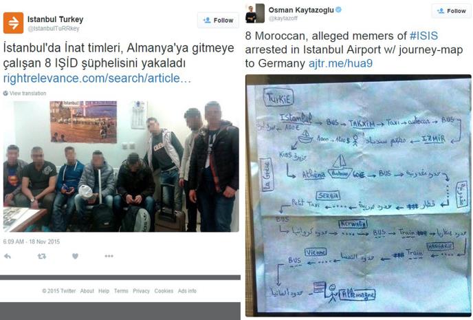 Grupa od osmorice muškaraca se učinila sumnjiva aerodromskoj policiji, pa su ih po sletanju zaustavili i odveli u pritvor. Jedan od Marokanaca policiji je ispričao da je sa grupom iz Kazablanke doleteo do Istanbula predstavljajući se kao izbeglica i da je njihov cilj Nemačka.
