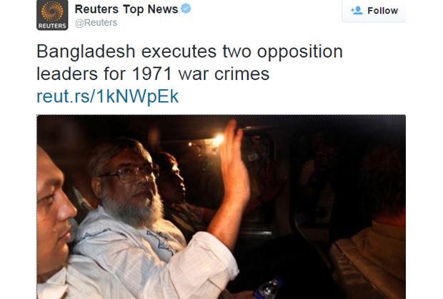 Dva opoziciona lidera u Bangladešu pogubljena su večeras zbog zločina počinjenih tokom rata za nezavisnost 1971. godine, nekoliko sati nakon što je predsednik Abdul Hamid odbio zahtev za njihovo pomilovanje