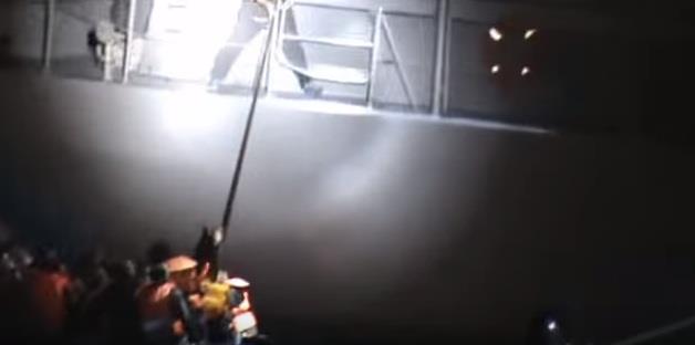 Na snimku se zaista vidi kako jedan muškarac s velikog broda dugačkim štapom s kukom bode prepunjeni gumenjak, a nekoliko sekundi kasnije vidi se kadar u kojem očajni ljudi vrište i mole za pomoć, dok gumenjak popušta.
