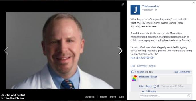Nakon što su pretražili kuću dr Volfa, federalni agenti su pronašli metamfetamin, kao i USB sa dečjom pornografijom. Volf je priznao da poseduje snimke dečije pornografije, ali da nikada nije imao seksualni odnos s maloletnicima, piše "New York Times".