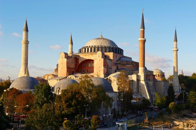 Aja Sofiju je izgradio car Justinijan 537. godine. Služila je kao pravoslavna crkva do 1204. godine, kad je bila pretvorena u katoličku crkvu. Zatim je 1261. ponovo postala pravoslavna crkva, da bi 1453. godine osvajanjem Vizantijskog carstva od strane Turaka pretvorena u džamiju, a zatim 1975. u muzej.