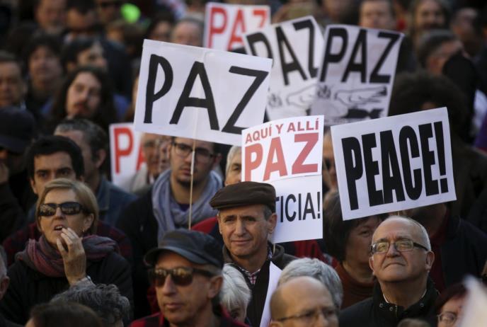 Građani su se okupili na poziv građanskog pokreta "Ne u naše ime" koji su pokrenuli umetnici na internetu s podrškom oko 34.000 Španaca na društvenim mrežama. Taj pokret se zalaže za borbu protiv terorizma, ali se protivi oružanom načinu rešavanja sirijske krize.