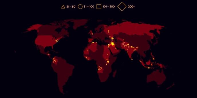 Sledeći video prikazuje svaki teroristički napad u kome je bilo više od 20 žrtava od 1. decembra 2000. godine do 13. novembra 2015.