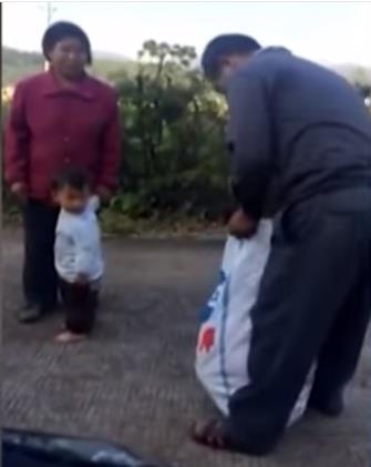 Snimak prikazuje neimenovanog dedu koji pristiže na stanici školskog autobusa u Guangdong provinciji, južnoistočnoj Kini, noseći dete u džaku na ramenu i đački ranac ju ruci.