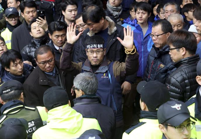 Vođa sindikata Han je na poziv policije izašao iz hrama, ispred kojeg su mu članovi sindikata napravili špalir spojivši ruke.