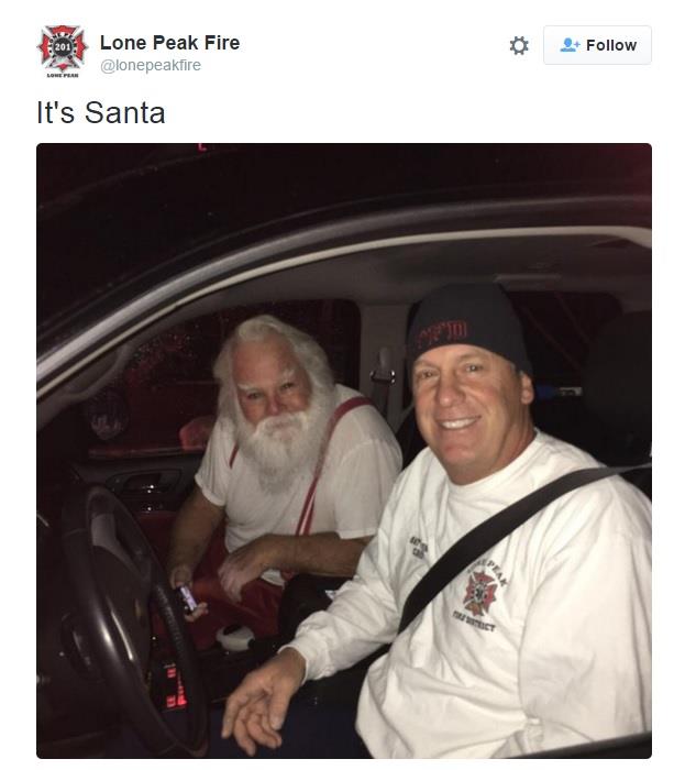 "Već godinama spašavam ljude u nevolji, ali još nikada nisam spasio Deda Mraza", izjavio je kroz šalu Džozef Mekri, šef vatrogasne brigade u Loun Piku, u američkoj državi Juta.