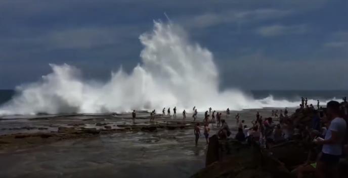 Neverovatan snimak koji se pojavio na Internetu pokazuje trenutak kada je ogroman talas na jednoj australijskoj plaži uplašio mnoge kupače.