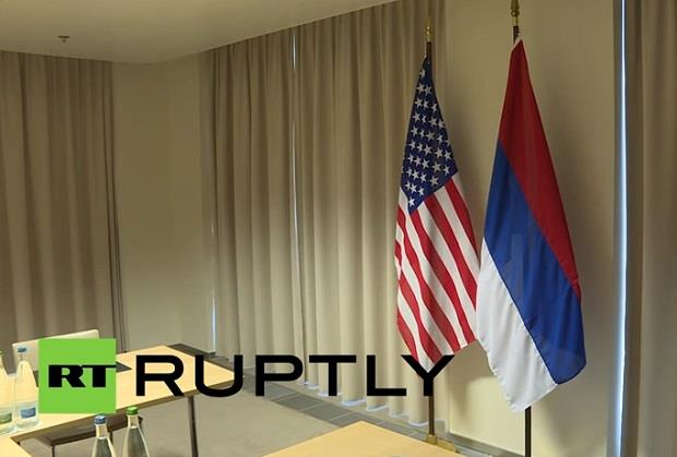 VIDEO POMEŠALI RUSIJU I SRBIJU Amerikanci istakli srpsku zastavu mesto ruske za susret Lavrov-Keri