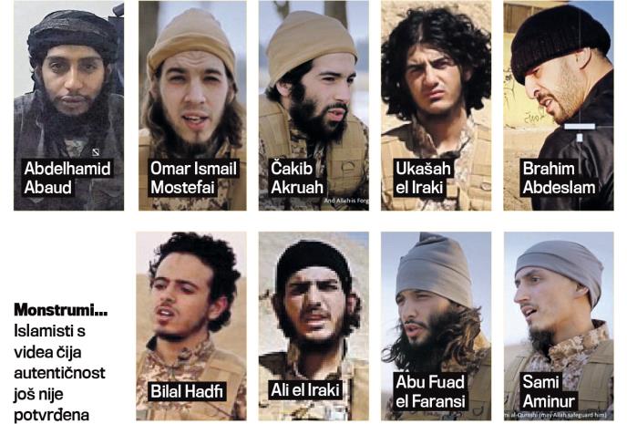 KAIRO - Islamska država objavila je juče video-snimak na kome su navodno prikazane fotografije i poslednje izjave devet njenih pripadnika koji su učestvovali u terorističkim napadima u Parizu 13. novembra, u kojima je ubijeno 130 ljudi.