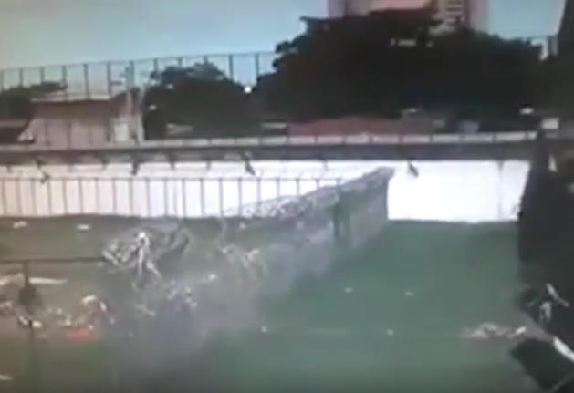 Na snimku se može videti kako jedni zatvorenici beže glavom bez obzira prelazeći preko žičane ograde dok su drugi pali na zemlju u tom stampedu.
