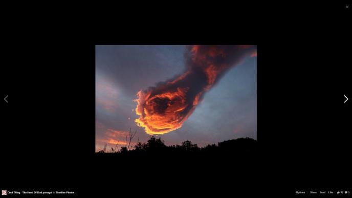 This is a cloud formation that happened over Portugal- the locals dubbed it 'The hand of God'. The cloud took the form...