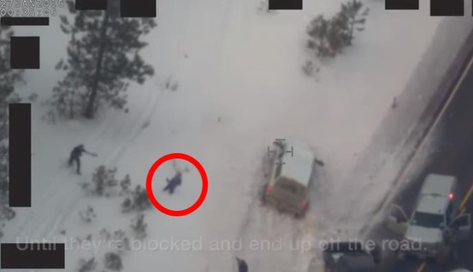 Finikum je jedan od glavešina milicije Oregona, parapolicijskog odreda, a na šokantnom snimku vidi se kako njegov beli džip pokušava da zaobiđe policijsku blokadu postavljenu na putu.