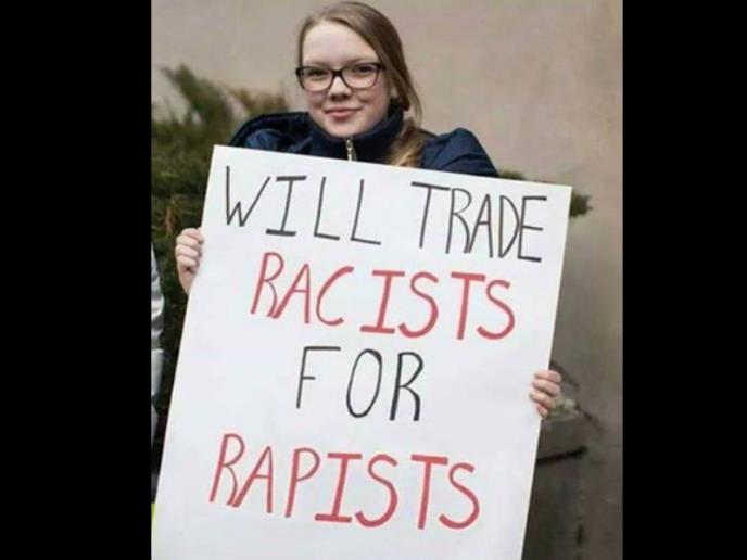 Radikala levica posebno stoji na stanovištvu da masovno useljavanje i mešanje domaćeg i novopridošlog stavnovništva treba podržati po svaku cenu, a jedna od pripadnica levičarske grupe "Međunarodne socijalističke grupe Antifa", je sa podrškom otišla još dalje i šokirala Nemce svojim stavom da više voli "seksualno aktivne izbeglice nego nemačke rasiste". Ona je na fejsbuk profilu grupe istakla i transparent "Menjam rasistu za silovatelja", a kao povod svoje provokacije je navela protest protiv zahteva desničara da se ograniči prijem izbeglica.