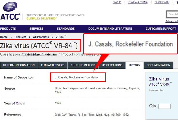 Zatim se ispostavilo da viru zika može da se kupi na internetu - na sajtu pod nazivom atcc.org, gde se instraživačima nudi na prodaju veliki broj različitih virusa i bioloških sredstava, Fondacija Rokfeler je stavila na prodaju virus zika, za koji je navedeno da je uzet iz krvi majmuna 1947.