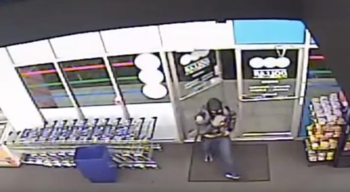 Na snimku se vidi da je on mirno ušetao u prodavnicu nameštajući masku. Nekoliko sekundi kasnije, izvukao je pištolj koji je uperio u prodavca. Betmen je u ranac stavio novac koji mu je predao nemoćni prodavac.