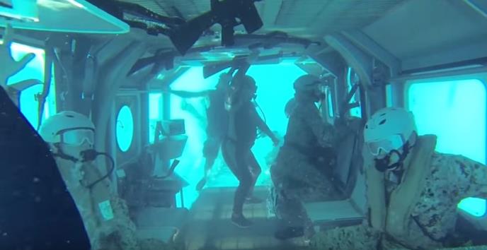 Vežba simuliranja pada helikoptera u vodu jedna je od najtežih vežbi. Osim što ih potapaju u vodu u helikopteru, oči su im vezane, pa moraju naslepo da se izvuku iz njega.