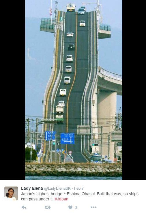 Ešima Ohaši, most u Japanu, koji ima nagib od čak 6,1 odsto zbog čega podseća na tobogan, ubraja se u najopasnije mostove na svetu