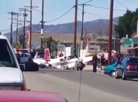 Avion se srušio na putu San Fernando u naselju Pakoima u Los Anđelesu. Uprkos svemu, pilot se izvukao bez skoro ikakvih povreda.