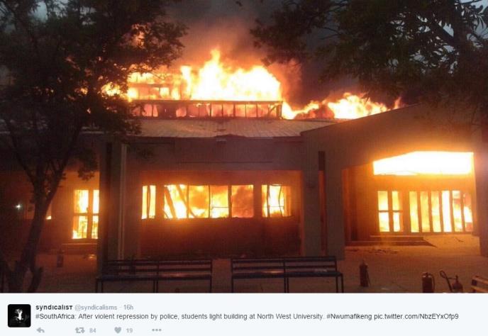 Južnoafrički Severozapadni univerzitet je evakuisan, a studentsko naselje zatvoreno na neodređeno vreme nakon što su studenti koji su protestovali zapalili zgrade, uništavajući administrativnu zgradu, rekao je danas portparol te ustanove.