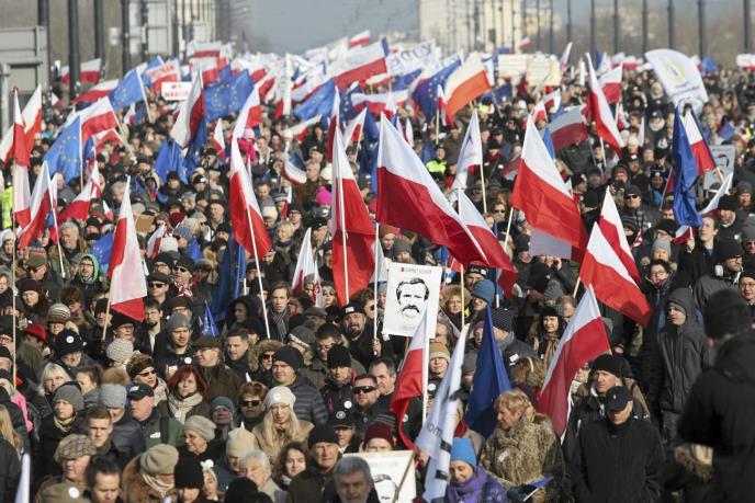 Veliki broj okupljenih nosio je plakate sa fotografijom prvog slobodno izabranog predsednika Poljske posle pada komunista, Lehom Valensom, koji se nedavno suočio sa obnovljenim optužbama da je bio saradnik tajne komunističke policije sedamdesetih godina pre nego što je osnovao sindikat "Solidarnost" koji je svojim delovanjem doveo do slamanja komunizma. "Branićemo demokratiju", "Leh Valensa" uzvikivali su protestanti.