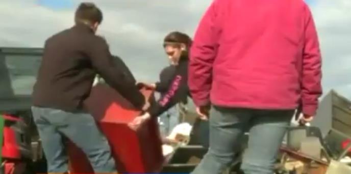Oluja koja je pogodila ovaj gradić rušila je sve pred sobom. Džon Vinder i njegova porodica sakrili su se u kupatilu. "Oluja nam je srušila deo kuće, mislili smo da nećemo preživeti, bilo je užasno" rekao je Vinder.