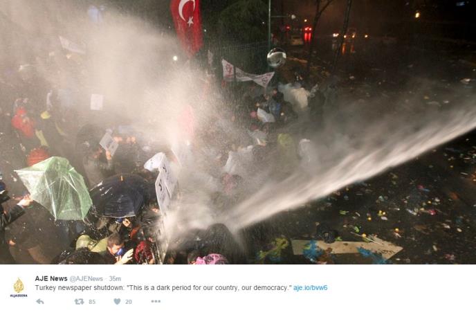 (FOTO) DEMONSTRACIJE U TURSKOJ: Suzavac i vodeni topovi na protestu za odbranu opozicionog lista
