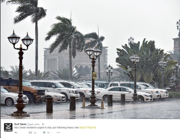 Rain storm battering the UAE. Will now post some videos. This is from last night in Abu Dhabi. Everyone drive safe pic.twitter.com/jtBgKMjHAQ