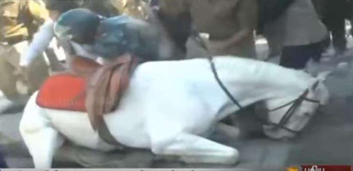 U Utarakhandu na severu zemlje održavao se protest koji je obezbeđivala i konjička jedinica. Na društvenim mrežama pojavile su se fotografije i snimci na kojima se vidi da je lokalni političar Ganeš Joši napao konja udarajući ga palicom.