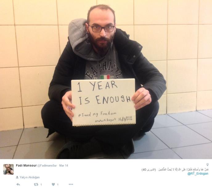 Organizacija za zaštitu ljudskih prava Amnesti Internešenel je danas zatražila da Turska oslobodi Sirijca Fadija Mansura, koji je godinu dana zatočen na istanbulskom aerodromu.