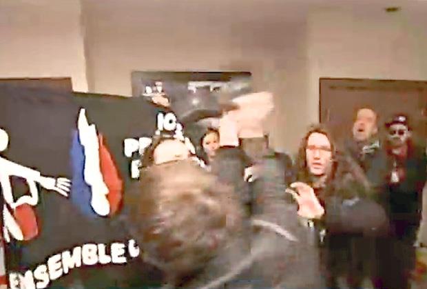 Međutim, oni su uzvratili uzvikujući parole protiv nje, nakon čega je član obezbeđenja Francuskinje udario jednog muškarca iz grupe, pa su demonstranti otišli. Policija nikog nije uhapsila.