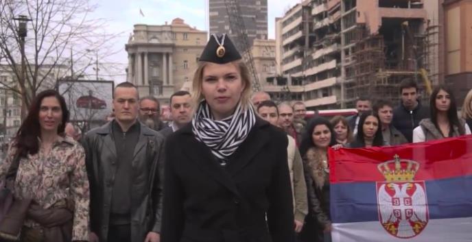 Spot počinje najavom jedne devojke koja nosi šapku sa ruskim oznakama dok govori u kameru. Ona na početku podseća da je nakon NATO bombardovanja Srbija izgubila kontrolu nad Kosovom.