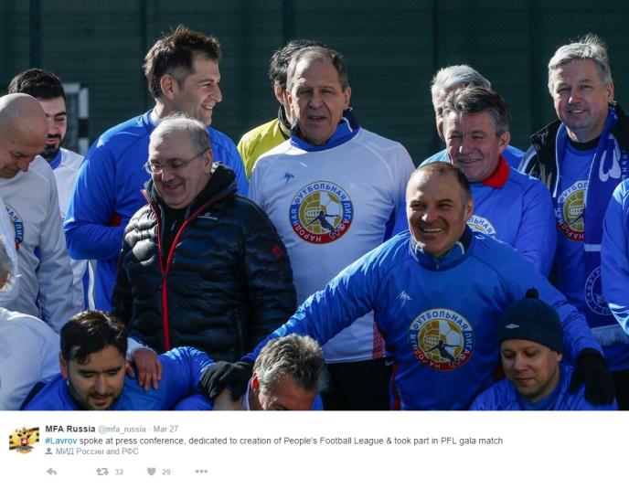 Ruski ministar spoljnih poslova Sergej Lavrov, sem diplomatije u kojoj postiže golove, okušao se nedavno i u golovima druge vrste - fudbalskim.
