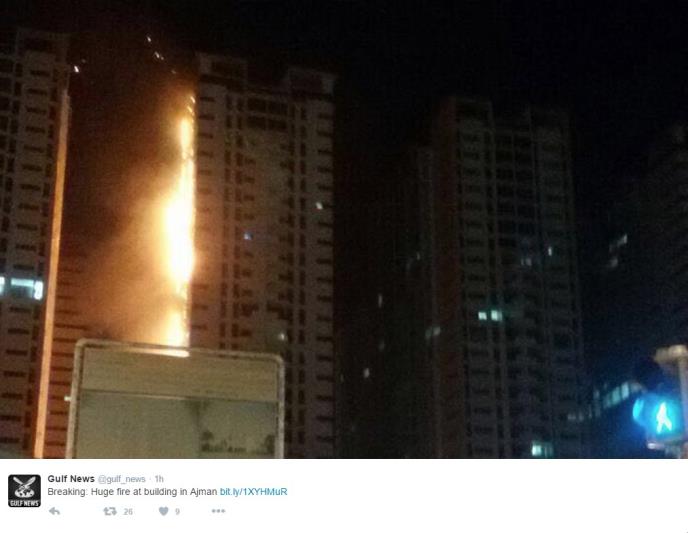 Huge fire at #Ajman towers in UAE pic.twitter.com/mYohE2oYpf - via @RT_com