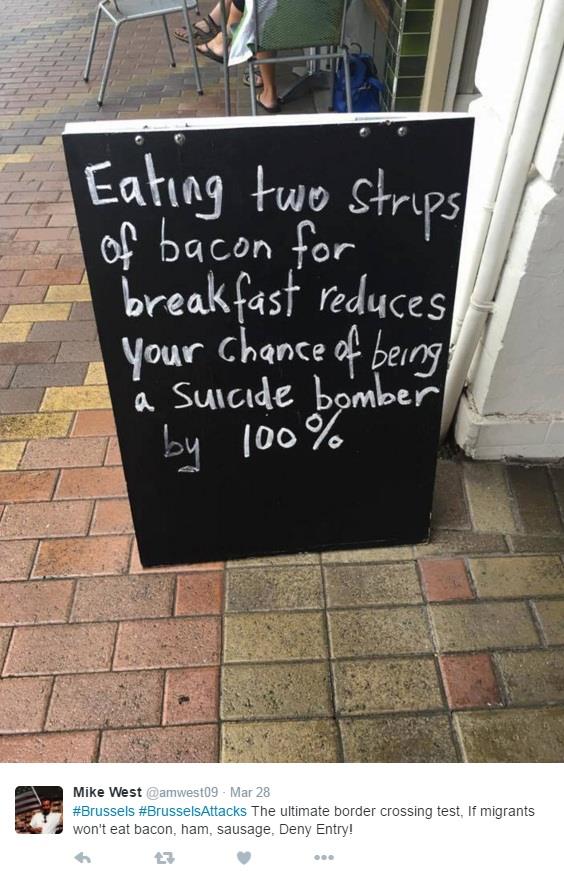 Nakon samoubilačkih napada u Parizu i Briselu, jedan ugostitelj okačio je ispred svog restorana crnohumornu reklamu za svoje proizvode.