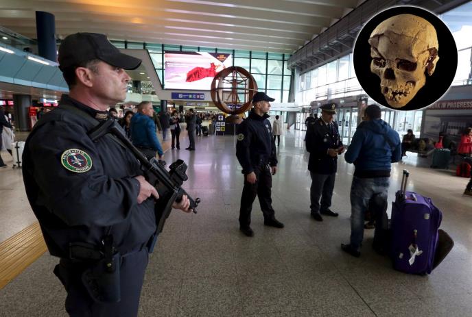 Lobanja kojoj nedostaje donja vilica nađena je juče u ručnom prtljagu čoveka koji je trebalo da otputuje za Diseldorf, a koji je tvrdio da mu je potrebna za neka naučna ispitivanja.