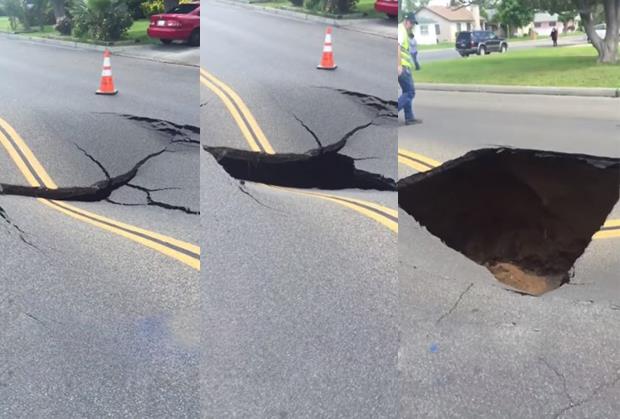 Kamera je zabeležila trenutak kad se nasred puta u Maderi u američkoj saveznoj državi Kaliforniji otvorila ogromna rupa i progutala dobar deo asfalta.