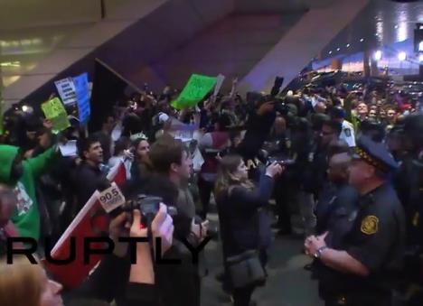 Dok su se Trampove pristalice razilazile po završetku mitinga, skandirajući "Izgradite taj zid" (protiv imigranata) i "Amerika, Amerika", nekoliko stotina njegovih protivnika uzvikivalo je pogrdne reči i psovke, te su se dve strane sukobile najpre verbalno, a zatim i fizički, na šta je reagovala policija i razdvojila demonstrante.