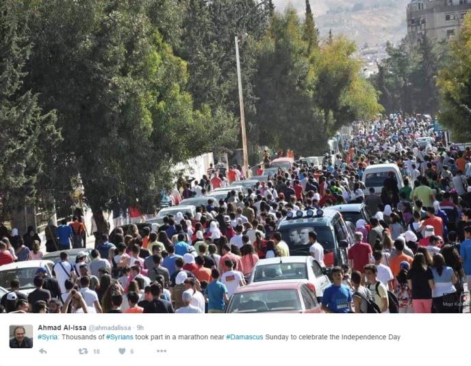 OKOLO BESNI RAT A ONI TRČE MARATON: Sirijci neustrašivo obeležili Dan nezavisnosti