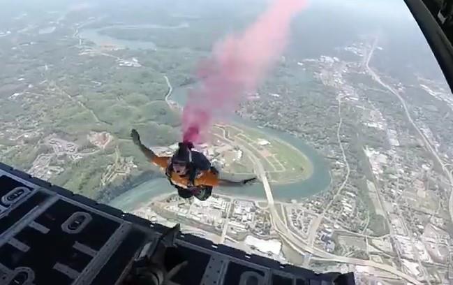 Pripadnici Padobranskog tima američke mornarice izveli su egzibiciju pred fudbalsku utakmicu i ostavili sve bez daha.