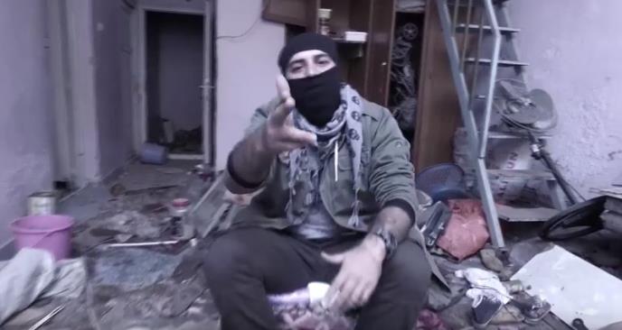 Reper, koji je maskiran u videu a na Jutjubu se predstavlja kao SAT5, kruži oko srušenih zgrada u istorijski kurdskom većinskom okrugu izbacujući nacionalističke parole i napadajući "kurdske laž" i "cionističke planove".