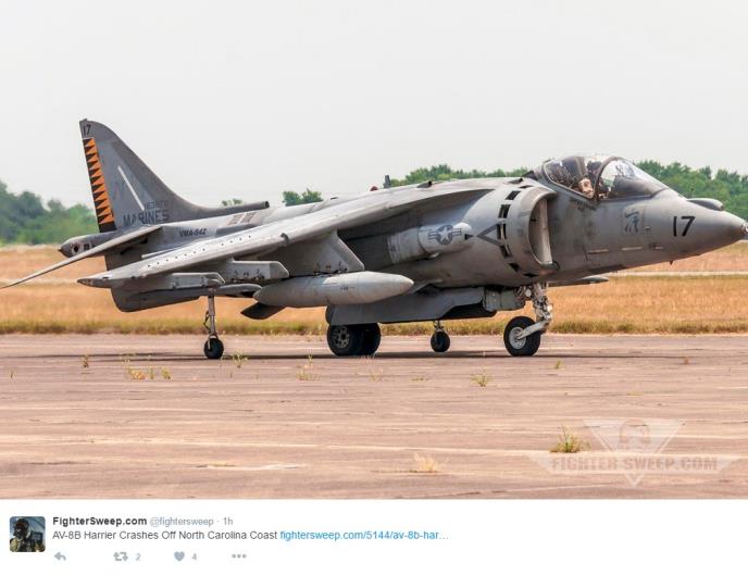 Američki vojni avion AV-8B Harijer II srušio se uz istočnu obalu SAD, ali je pilot uspeo da se na vreme katapultira i sada se nalazi u stabilnom stanju, saopštili su jutros američki zvaničnici.