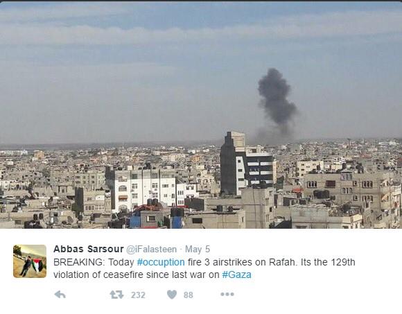 Vojska je saopštila da se osvetila vazdušnim udarima protiv islamskog Hamasa koji vlada pojasom Gaze. Palestinski mediji javljaju da ni tamo nije bilo ranjenih. Pripadnici Hamasa ispaljivali su granate na Izrael u poslednja tri dana što je izazvalo odmazdu Izraela, navela je agencija AP.