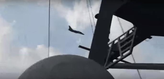 U jednom trenutku može se videti kako ruski lovac leti toliko nisko da se mogao čuti i jedan od članova posade na brodu kako govori: "O moj bože!"